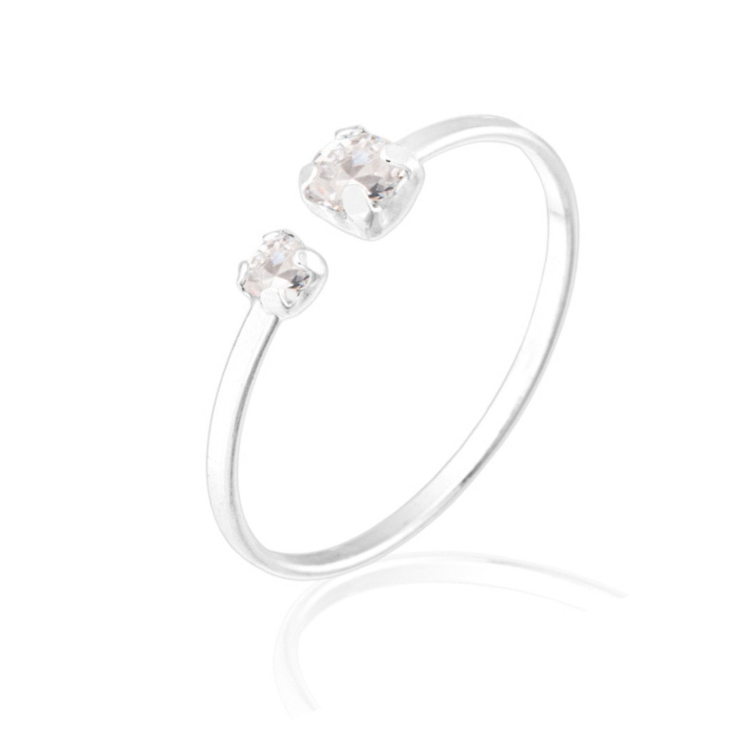 Anel de Prata de Pedras Zircônia Cristal Regulável