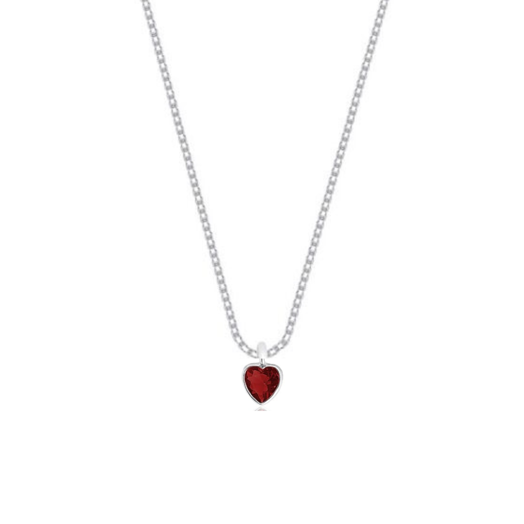 Colar de Prata 925 Ponto de Luz Coração- Vermelho